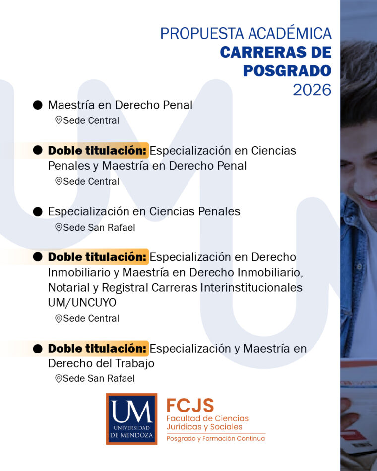 A través de las carreras de posgrado -Doctorado, Maestrías y Especializaciones-, buscamos responder a la necesidad comunitaria de profundizar el conocimiento académico y la formación profesional en el más alto nivel, en las diversas disciplinas que conforman las Ciencias Jurídicas y Sociales, entrelazadas y en íntima relación con el medio social.