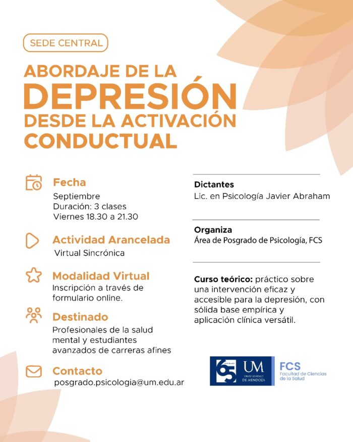 Entrenamiento teórico-práctico centrado en los fundamentos y estrategias clave de la Activación Conductual, una intervención basada en la evidencia para el tratamiento de la depresión, orientada a fomentar la participación de las personas en actividades significativas y alineadas con sus valores.