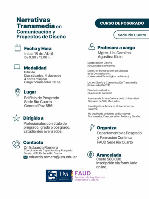 Universidad de Mendoza – Sede Río Cuarto – Edifico de Posgrado – General Paz 656.