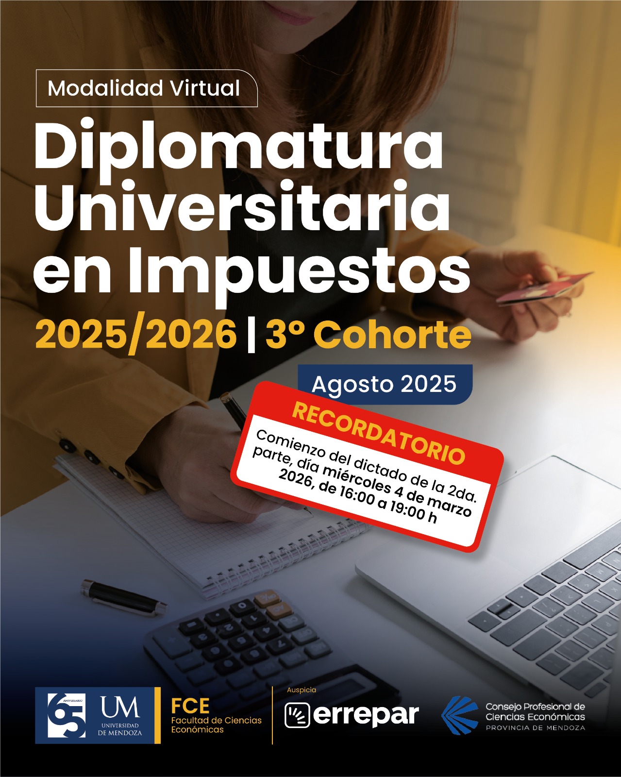 - CURSADO: Clases virtuales los miércoles desde agosto a Diciembre 2025 y luego de marzo a mayo 2026. Todos los miércoles de 16 a 19 hs.