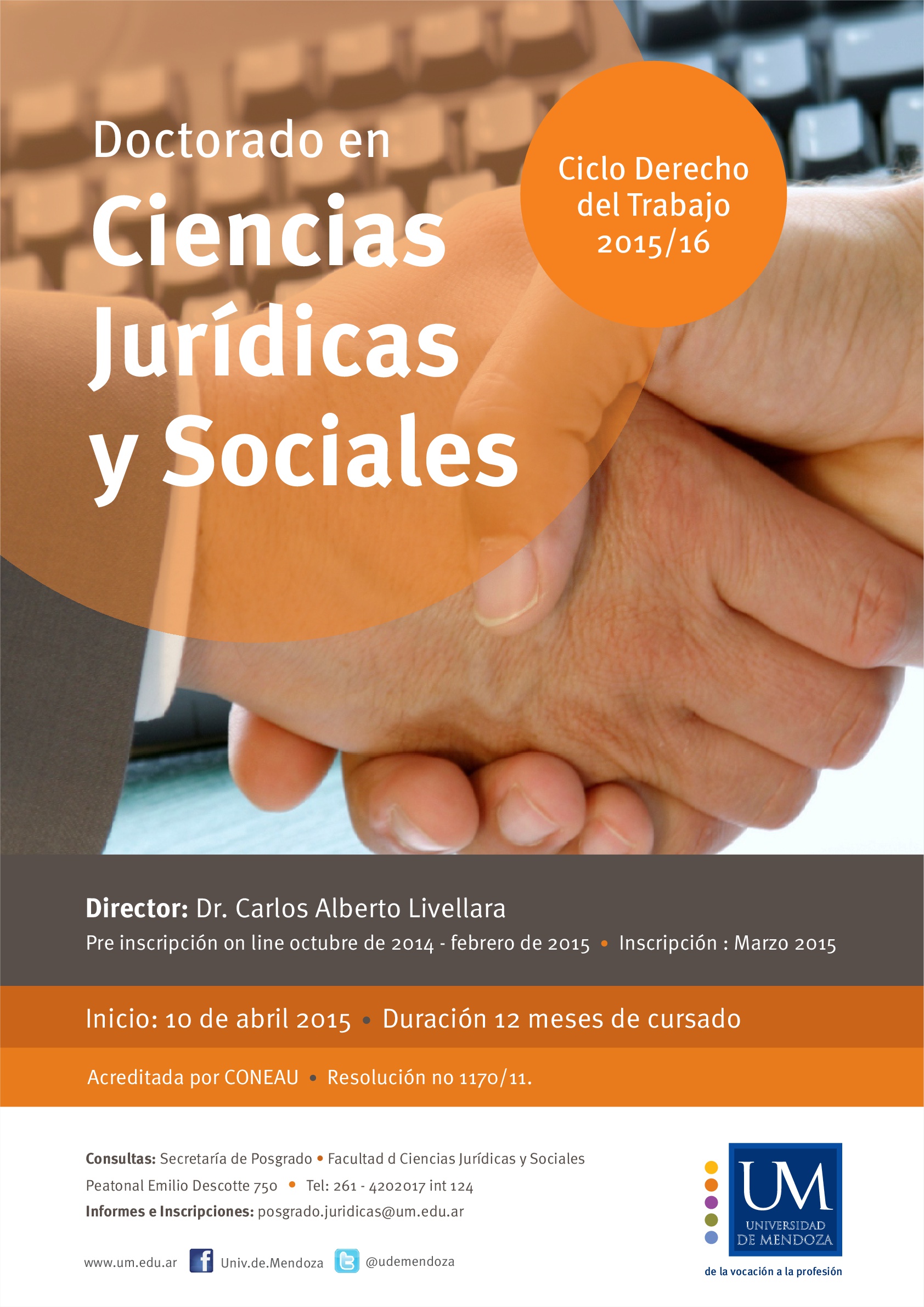 The School of Law and Social Sciences assumes to continue with this challenge in which it was a pioneer. Therefore, the Doctorate, already solidly established in the field, is considered as an offer that makes a significant contribution projected to the provinces of Nuevo Cuyo and Western Argentina, and open to interested parties from all over Argentina and other countries.