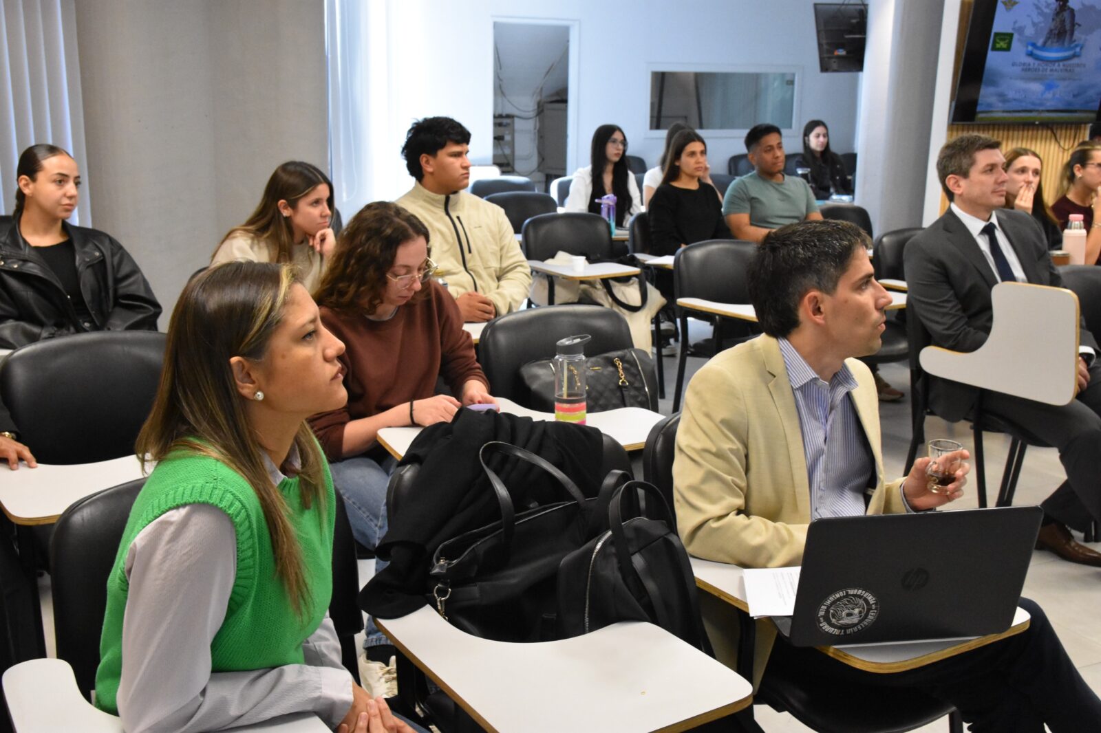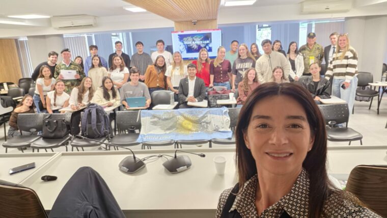 El pasado viernes 17 de abril, en el Aula Magna de la FCJS “Dr. E. Descotte”, se llevó a cabo una clase especial en el marco de la asignatura Derecho Internacional Público y de la Integración (turno mañana), correspondiente al cuarto año de la carrera de Abogacía de la Universidad de Mendoza, a cargo de la Prof. Dra. Georgina Guardatti.