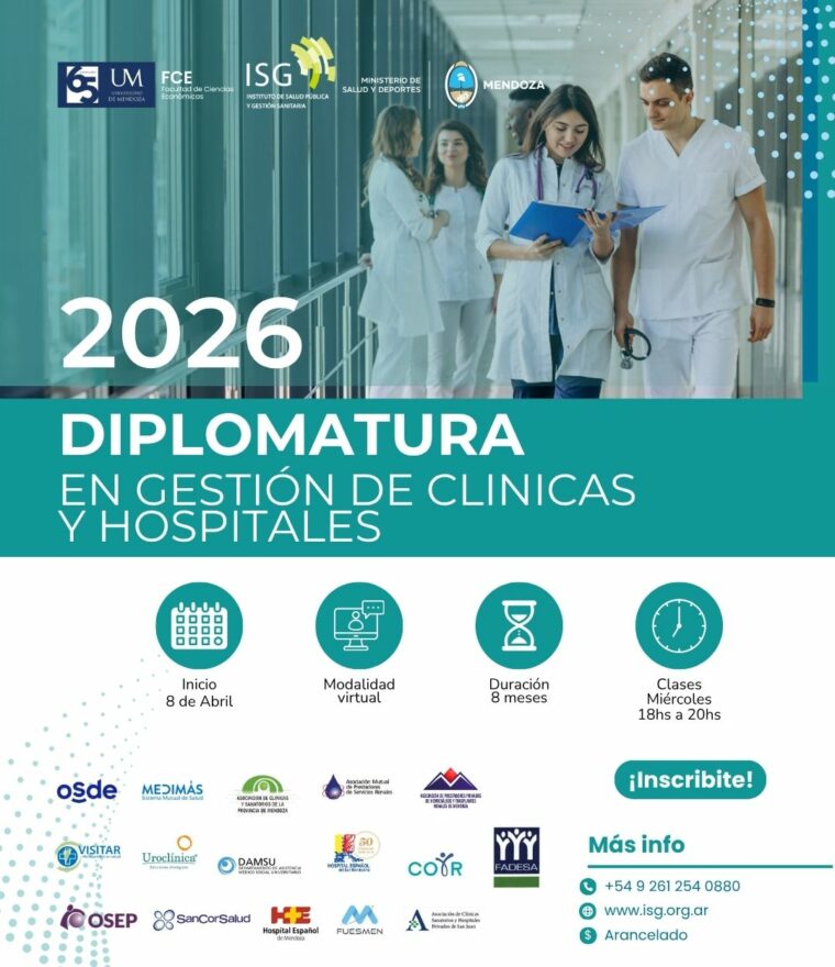 La Facultad de Ciencias Económicas de la Universidad de Mendoza (UM), en conjunto con el Instituto de Salud Pública y Gestión Sanitaria (ISG) y el Ministerio de Salud y Deportes de Mendoza, invitan a la comunidad a participar de la 2da Reunión Informativa sobre la edición 2026 de la Diplomatura en Gestión de Clínicas y Hospitales.