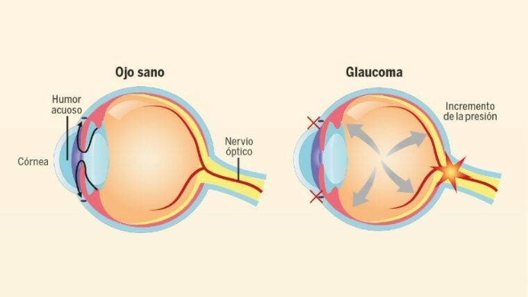 El ojo produce de manera constante un líquido llamado humor acuoso, el cual es vital para mantener una presión intraocular estable y nutrir las estructuras oculares. En un ojo sano, este líquido debe drenarse con normalidad. Sin embargo, cuando el sistema de drenaje falla, el humor acuoso se acumula. Ese exceso de fluido incrementa la presión interna, lo cual termina por comprimir y dañar las fibras del nervio óptico, que es el encargado de transmitir la información visual al cerebro.