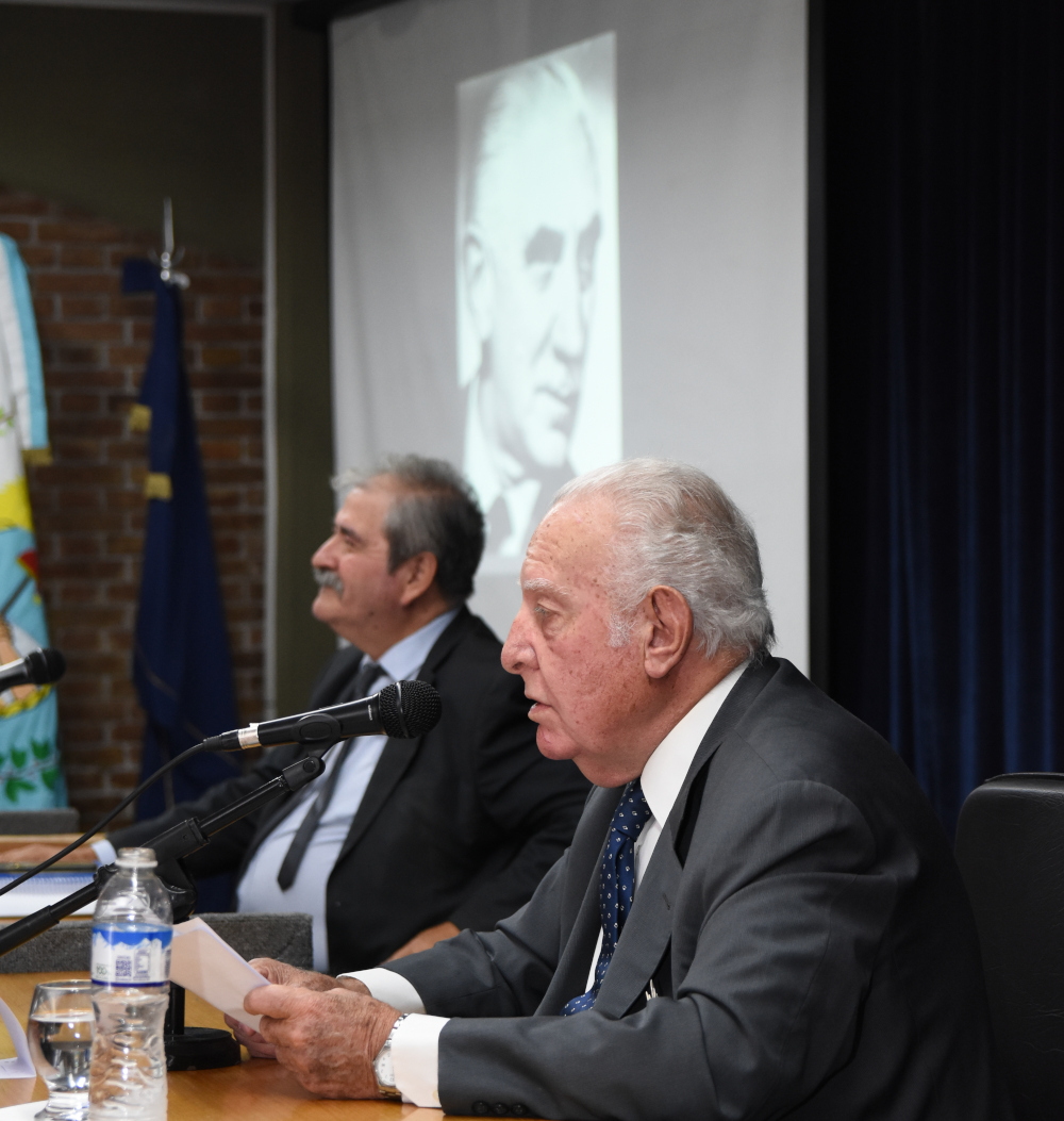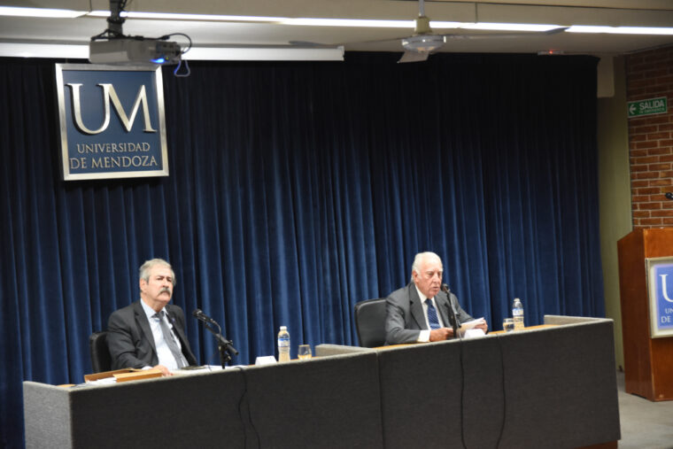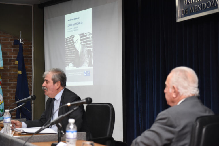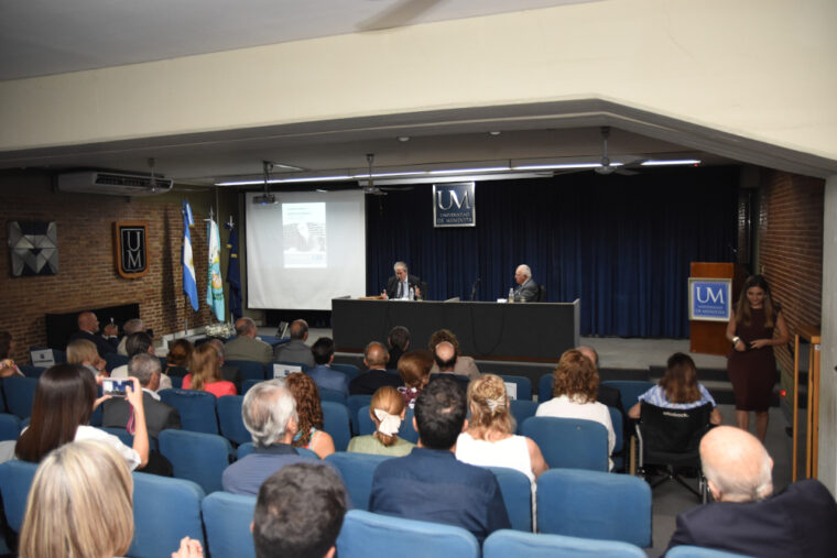El encuentro se inscribe en las celebraciones por los 65 años del inicio de las actividades de la Universidad. La mesa académica y la presentación de la obra estuvieron a cargo del profesor Mario Descotte, editor del libro y custodio del legado intelectual del fundador, y del Dr. Miguel Mathus Escorihuela, Dr. Honoris Causa y Profesor Emérito de la UM.