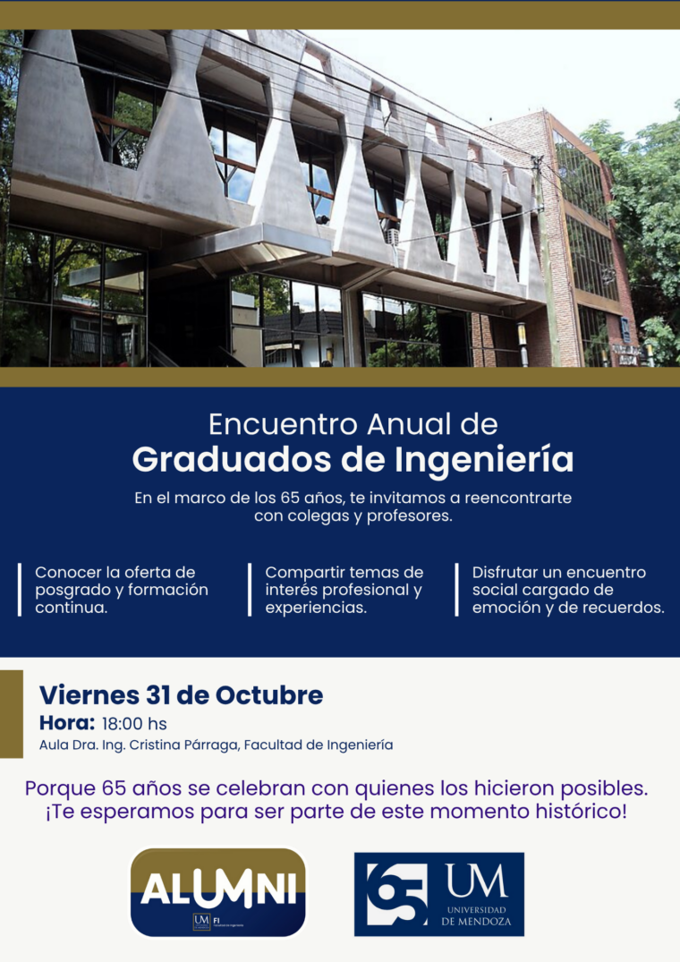 La Facultad de Ingeniería de la Universidad de Mendoza celebra su historia y su comunidad con el Encuentro Anual de Graduados, una actividad especialmente pensada para quienes formaron parte de esta casa de estudios y siguen construyendo el futuro desde la profesión.