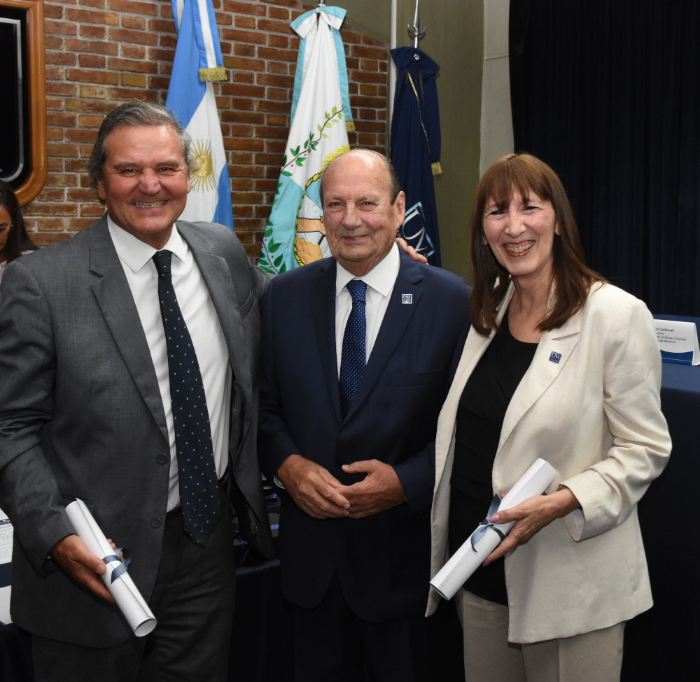 En el marco de esta renovación institucional, se procedió a reconocer a quienes han sido electos para integrar el Honorable Consejo Superior de la Universidad de Mendoza, cuya designación expresa la confianza de la comunidad académica. La entrega de los respectivos diplomas fue realizada por el Sr. Rector, acompañado por los Señores Decanos de cada Unidad Académica, distinguiendo a: