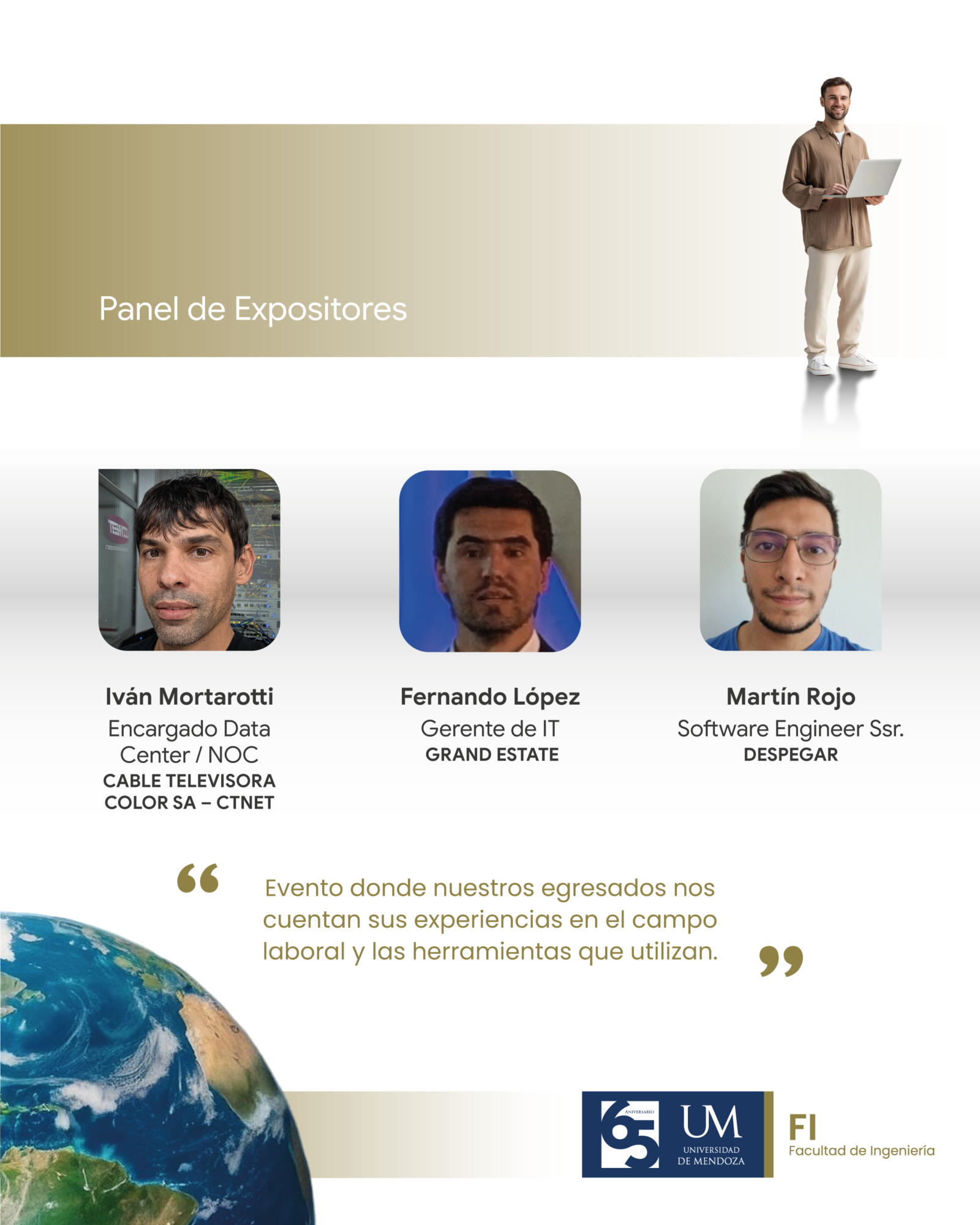 Cada uno de ellos compartirá su recorrido desde la universidad hasta su rol actual, las áreas en las que se desempeñan y los desafíos cotidianos de su trabajo.