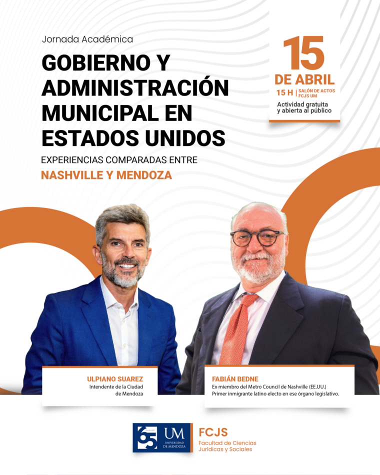 La Universidad de Mendoza (UM) invita a estudiantes, profesionales y a la comunidad en general a participar de la Jornada Académica «Gobierno y Administración Municipal en Estados Unidos: Experiencias comparadas entre Nashville y Mendoza».