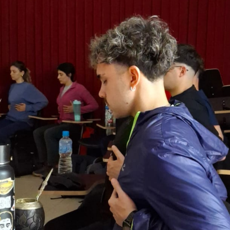 La actividad estuvo coordinada por la Instructora en Yoga Graciela Funes y el Instructor Joaquín Zonni, quienes guiaron a los estudiantes en prácticas destinadas a favorecer la conexión entre cuerpo, mente y respiración. La experiencia se centró en el valor que estas herramientas tienen en el abordaje profesional kinesiológico, especialmente desde una perspectiva integral de la salud.