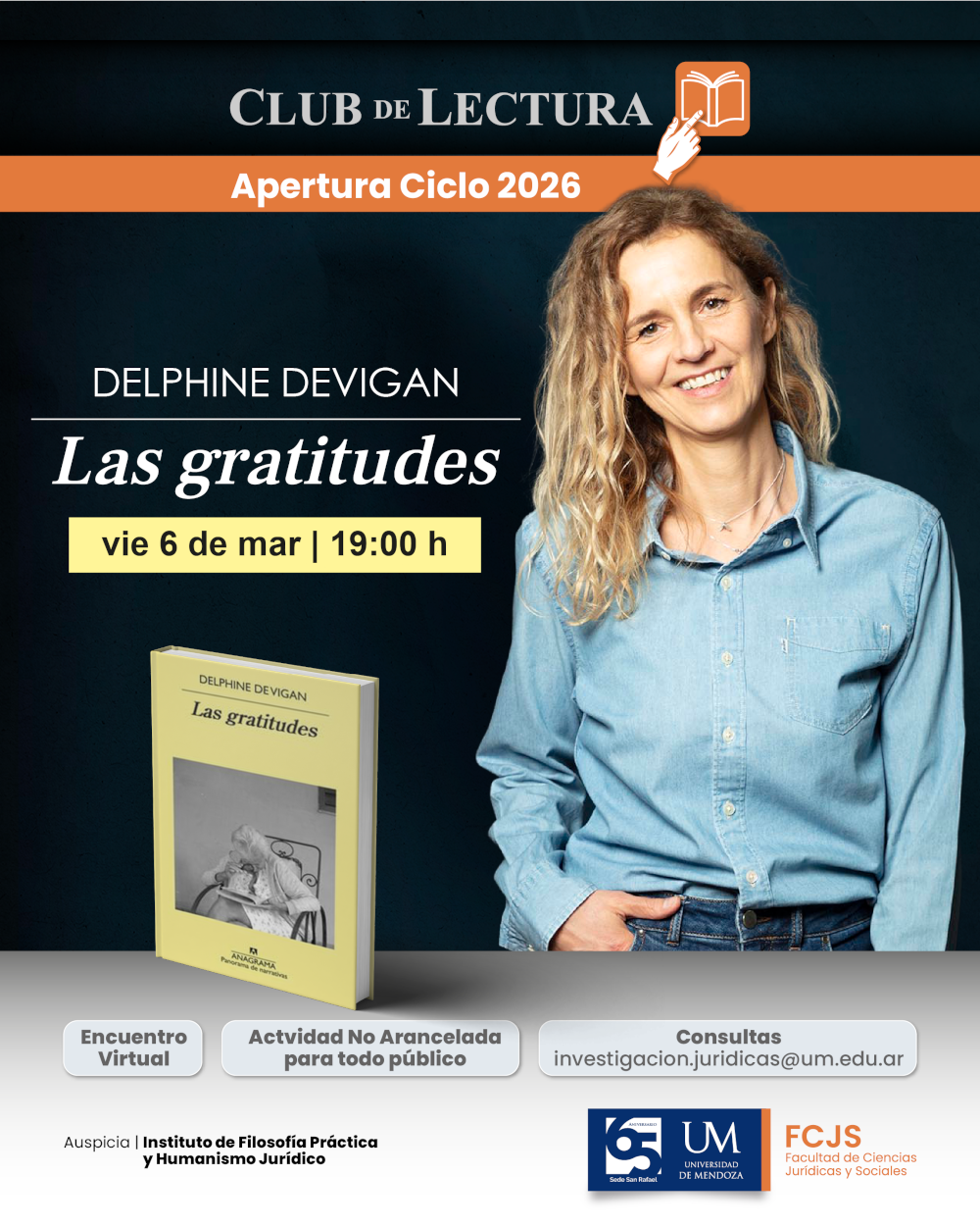 La Universidad de Mendoza (UM), a través de su Facultad de Ciencias Jurídicas y Sociales (FCJS), invita a la comunidad a la apertura del Ciclo 2026 de su tradicional Club de Lectura.