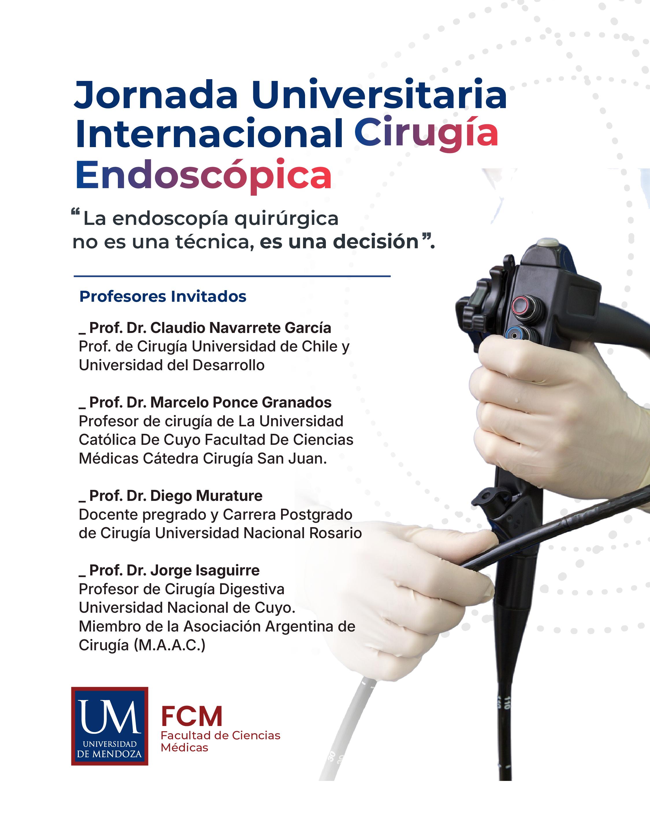 La Facultad de Ciencias Médicas (FCM) de la Universidad de Mendoza (UM) invita a la comunidad médica y académica a participar de la Jornada Universitaria Internacional de Cirugía Endoscópica. Este importante encuentro de actualización profesional tiene como premisa central una fuerte declaración: «La endoscopía quirúrgica no es una técnica, es una decisión».