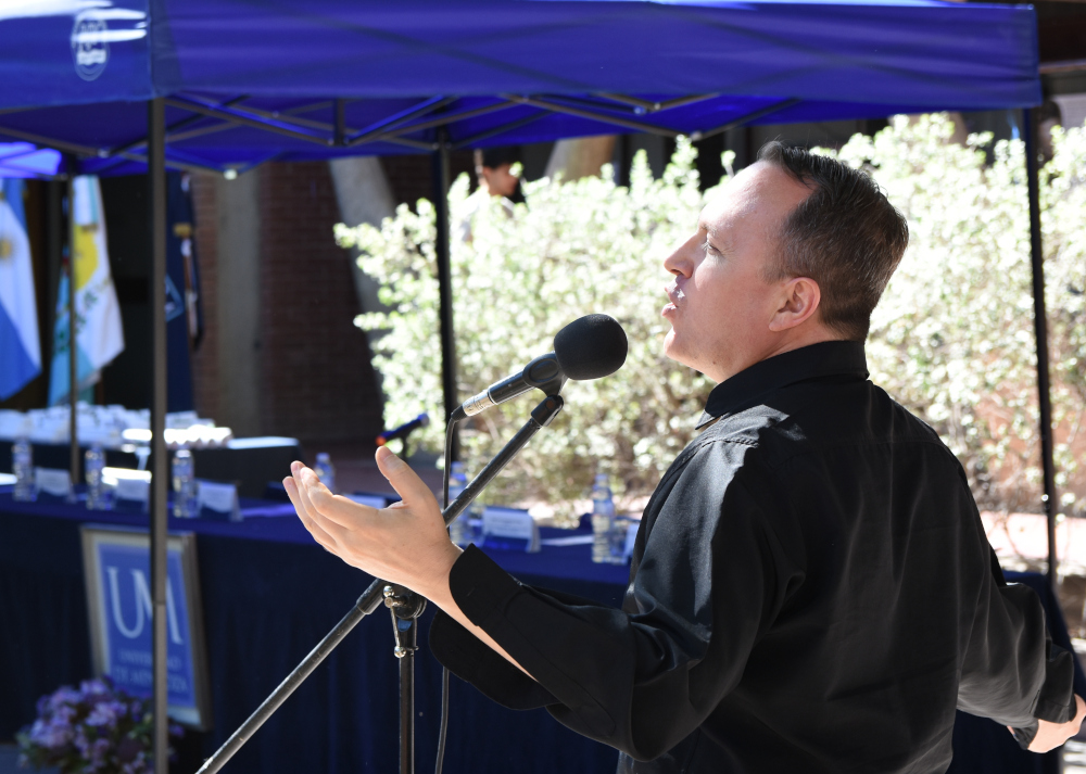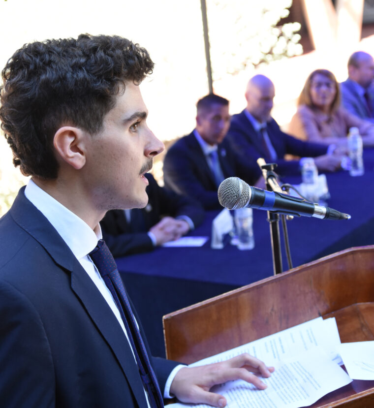Posteriormente, el Ingeniero Bruno Orbelli, Mejor Egresado, compartió unas palabras en representación de sus compañeros, recordando el impacto de la pandemia en su formación: