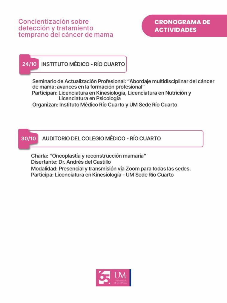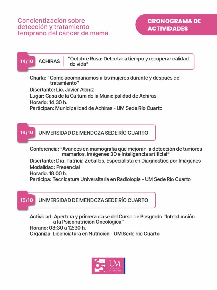 La propuesta “La UM se viste de rosa” reafirma el compromiso institucional de la Universidad de Mendoza con la salud, la educación y la responsabilidad social, promoviendo espacios donde la información y la prevención se transformen en herramientas de bienestar para toda la comunidad.