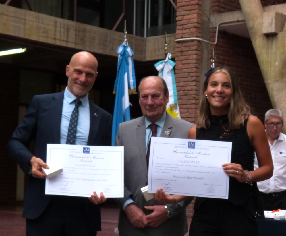 Durante la ceremonia, se entregaron distinciones académicas a los mejores egresados de cada facultad. En Ciencias Jurídicas y Sociales, la Abogada Luz Grinfeld recibió la medalla dorada y diploma como Mejor Egresada 2025, mientras que Julieta Rojas y Julieta Blanco fueron distinguidas por sus promedios en Escribanía y Procuración. En Ciencias Económicas, la Licenciada Julieta Magalí Tello Marchetti fue reconocida como Mejor Egresada 2025, y Andrés Javier Carbajo obtuvo la distinción al Mejor Promedio en Contador Público.