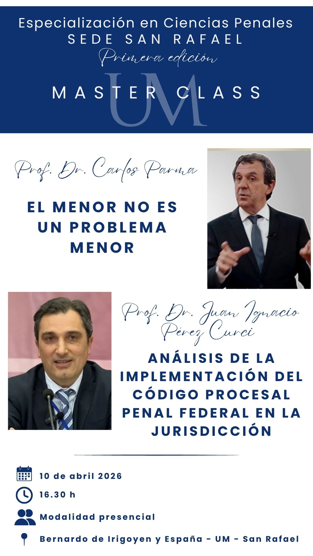 El encuentro, que se desarrollará bajo modalidad presencial, tendrá lugar el próximo 10 de abril a las 16:30 horas en el Aula Magna de la Facultad de Ciencias Jurídicas y Sociales de la UM (Sede San Rafael), ubicada en la intersección de las calles Bernardo de Irigoyen y España.