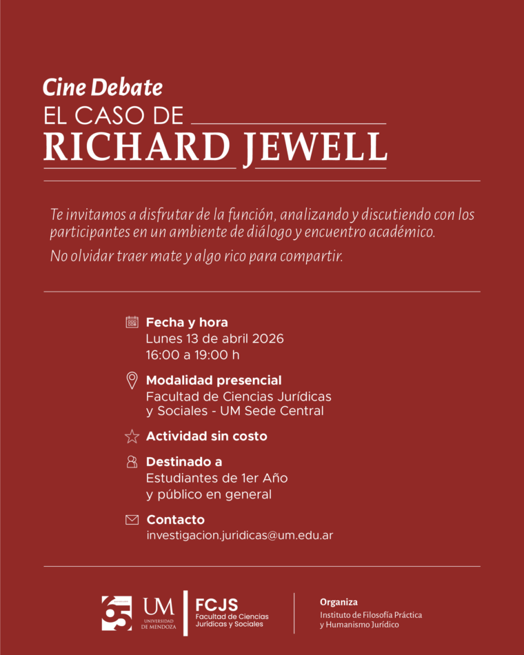 La Facultad de Ciencias Jurídicas y Sociales (FCJS) de la Universidad de Mendoza invita a toda la comunidad a participar de un nuevo encuentro de Cine Debate, un espacio diseñado para la reflexión y el intercambio de ideas.