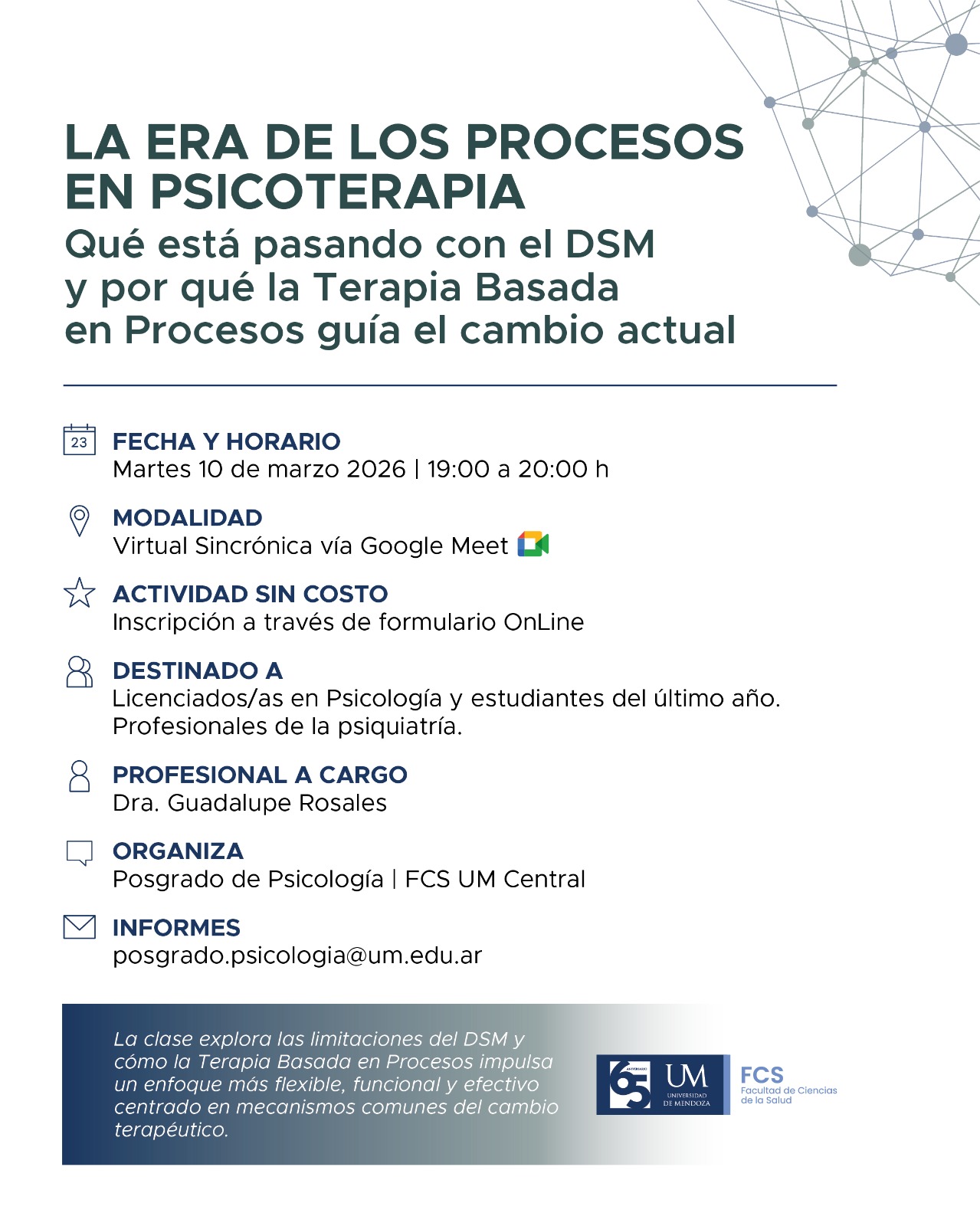 Los interesados en participar y conocer más sobre esta perspectiva que busca transformar el abordaje clínico, pueden asegurar su lugar completando el formulario oficial en el siguiente enlace: https://forms.gle/h1QriabsUx5nEyLQ7.