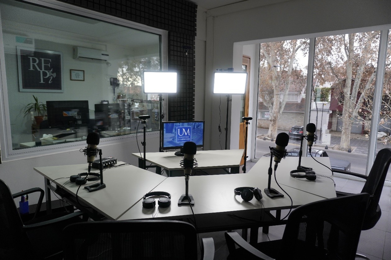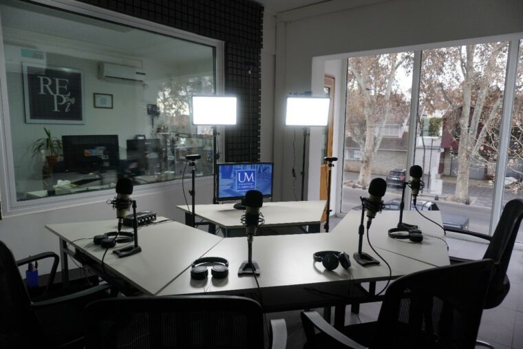 La generación de contenidos luego de hacer el taller se puede hacer en alguna de nuestras dos salas situadas en el estudio de REPI-UM en el Rectorado de la Universidad de Mendoza.