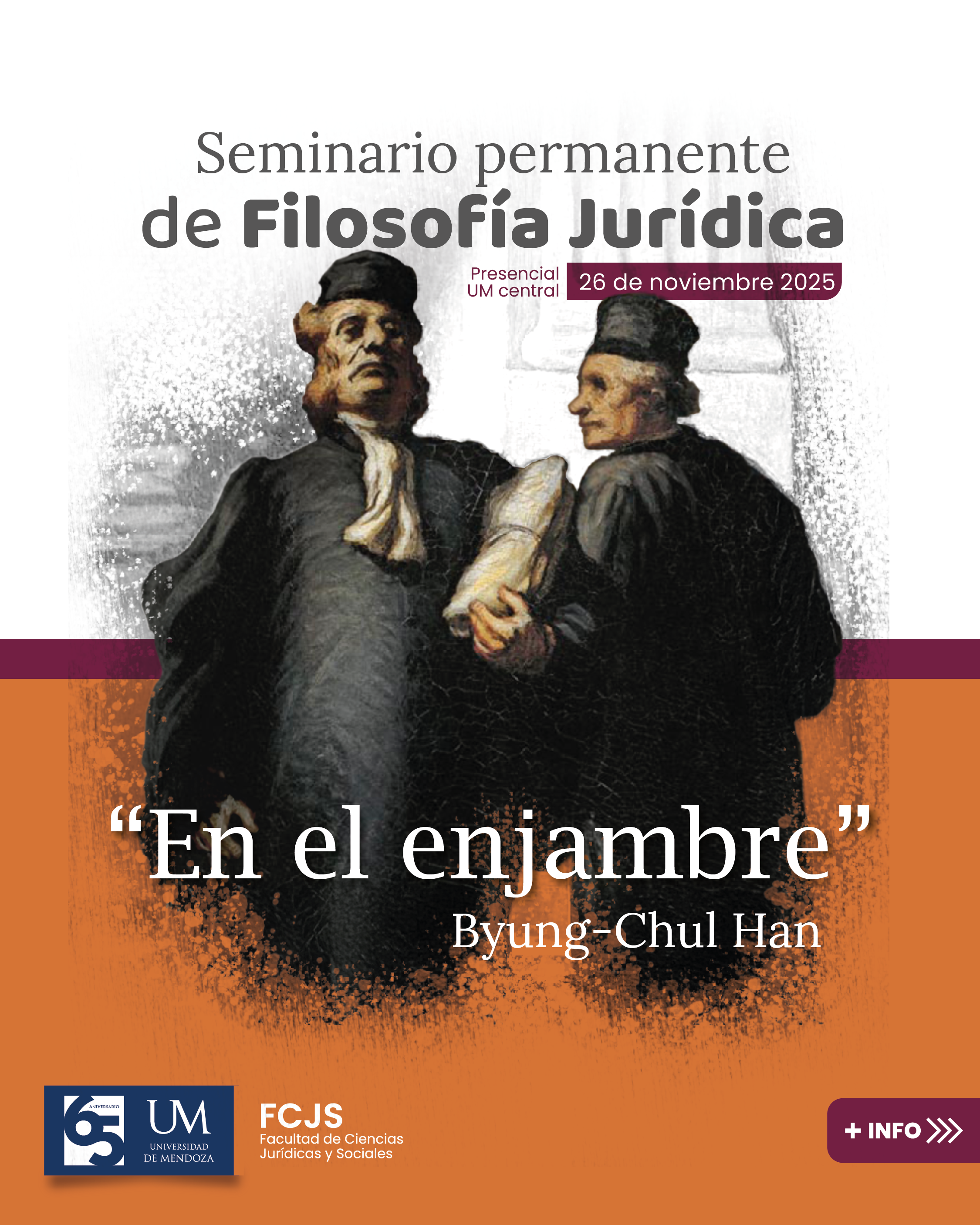 El Departamento de Filosofía Práctica e Humanismo Jurídico de la Facultad de Ciencias Jurídicas y Sociales de la Universidad de Mendoza invita a participar del Seminario permanente de Filosofía Jurídica, que se desarrollará el martes 26 de noviembre de 18:00 a 19:30 h en la sede central de la UM.