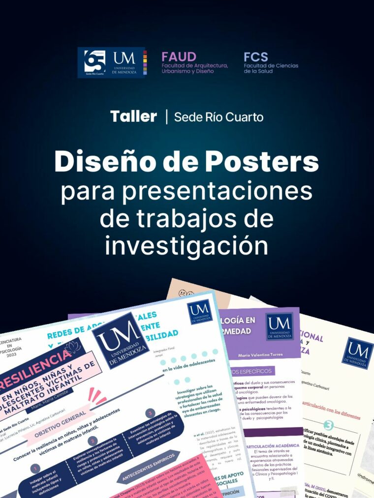 El próximo lunes 21 de octubre, de 19:00 a 20:30 h, se llevará a cabo el taller “Diseño de Posters para presentaciones de trabajos de investigación”, una propuesta organizada por la Cátedra de Seminario Final de TIF de la Licenciatura en Psicología de la Universidad de Mendoza, sede Río Cuarto.