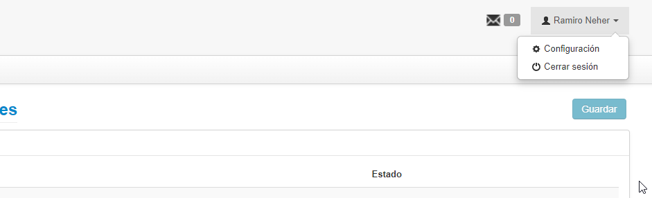Si usted se encuentra con una sesión abierta, en la esquina superior derecha veremos que aparecerá nuestro nombre junto a una flecha invertida. Al hacer click ella se nos desplegará un menú con las opciones Configuración y Cerrar Sesión: