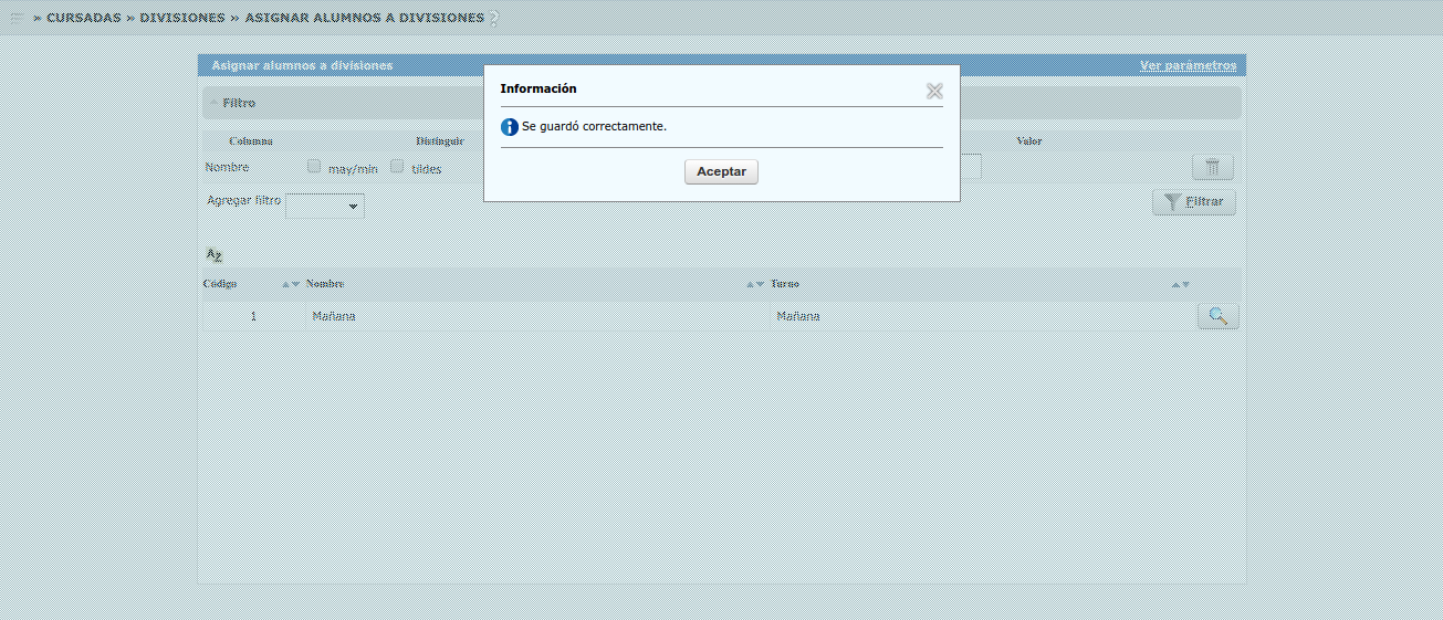Cursadas >> Divisiones >> Asignar Alumnos a Divisiones